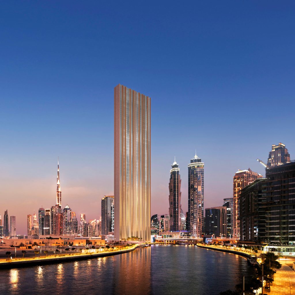 The Muraba Veil is conceived as an urban oasis where privacy, natural light, and water integrate into a vertical form. Strategically located in the Al Wasl neighbourhood between Dubai’s beachfront and the central Sheikh Zayed Road corridor, the project offers both prestige and connectivity. Its ultra-slender width—just 22.5 metres—makes it one of the most distinctive high-rises in the region.