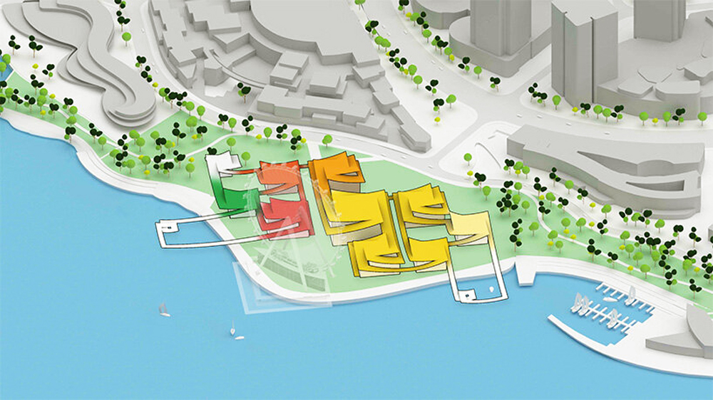The program is composed of four main gallery pavilions complemented by a grand entrance hall, multifunctional auditorium, theatre, dining areas, and a series of landscaped courtyards that transition seamlessly into the lakeside environment. Visitors move through layered pathways — above, below, and between pavilions — echoing the spatial rhythm of traditional gardens while embracing modern fluidity.