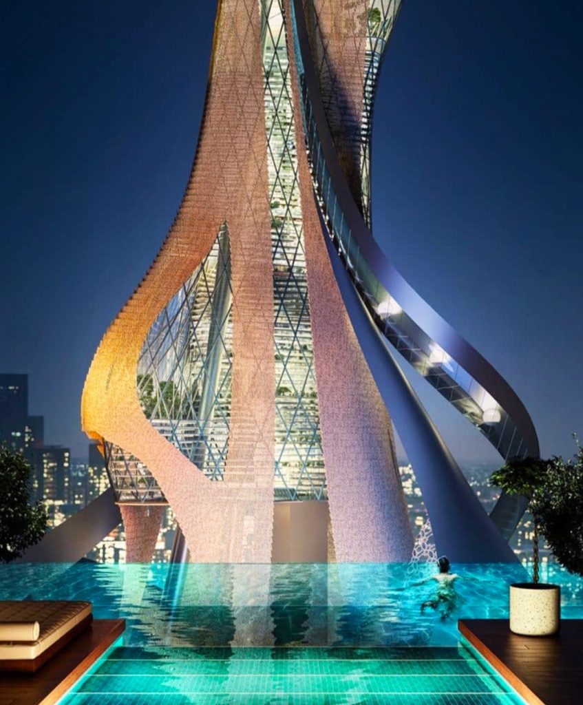 • Potential vertical gardens or sky terraces, offering green-space integration high above ground level