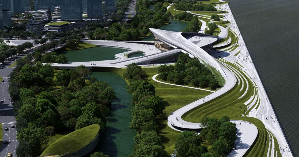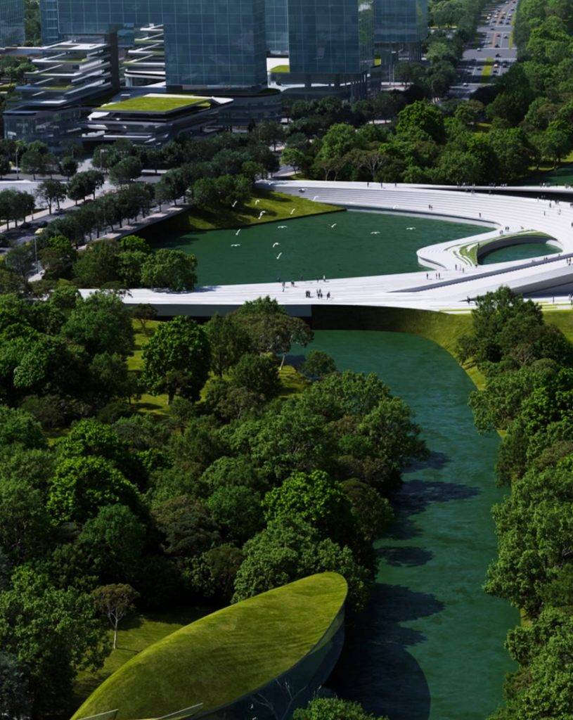 - Key Architectural Features: Dual wave-shaped volumes, central river-facing gateway, integrated landscaped terraces, indoor–outdoor circulation