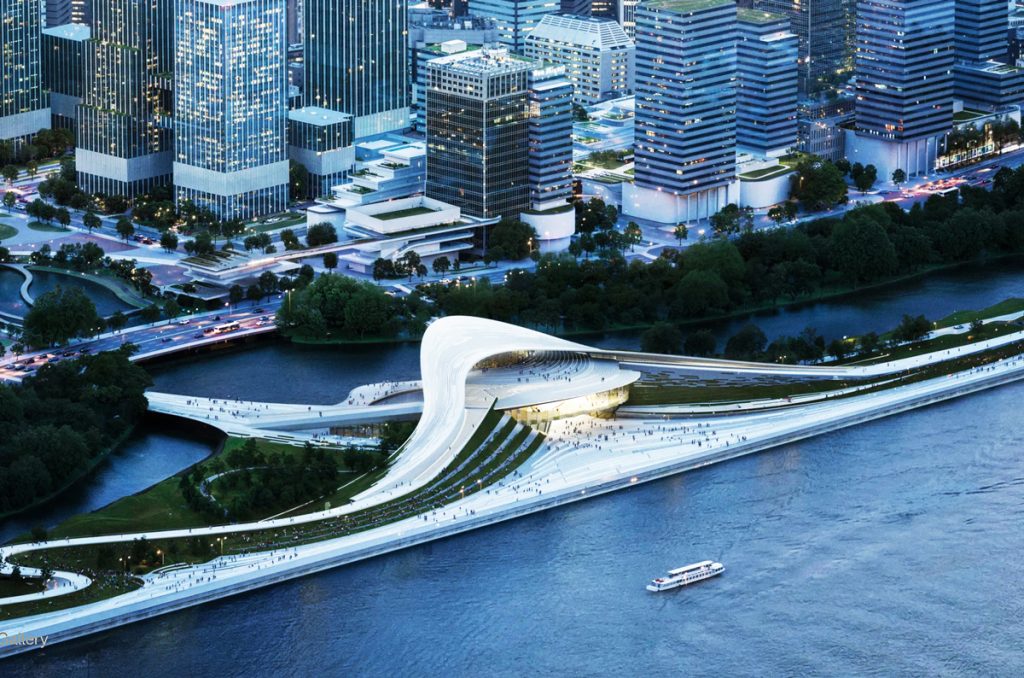 The Qiantang Bay Art Museum is envisioned as a public-facing cultural venue located where the Qiantang River meets the district’s Central Water Axis. Its wave-inspired architectural language reflects the tidal dynamics of the river and reinforces the district’s ambition to create a distinctive, identity-shaping arts destination. The project strengthens Hangzhou’s broader strategy to diversify its cultural presence beyond the established West Lake core.