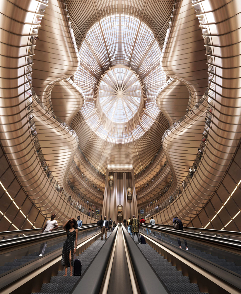 Zaha Hadid Architects designed the airport’s futuristic terminal structure, drawing inspiration from Ethiopia’s landscape and the nearby Great Rift Valley. The design features a central spine connecting terminal piers to reduce passenger transfer times while creating intuitive circulation through the airport.