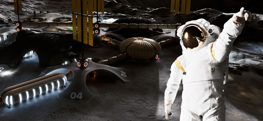 - Core Technologies: Inflatable modules, 3D-printed regolith structures