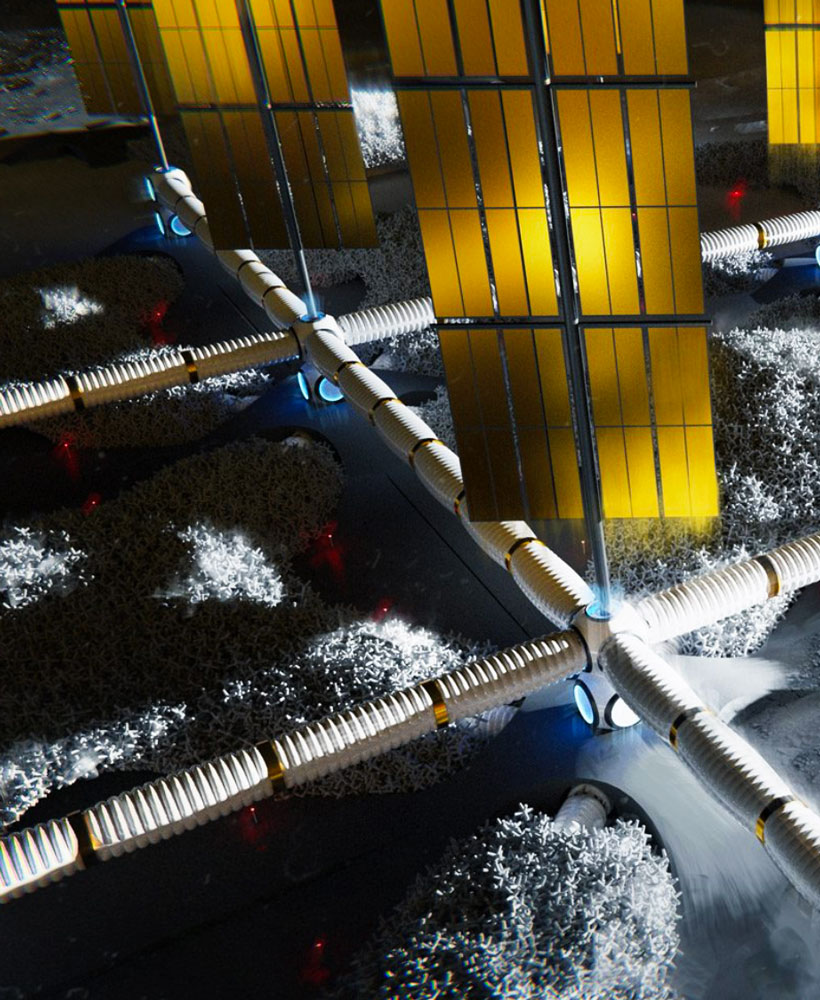 - Energy Infrastructure: Solar arrays positioned near the South Pole for near-continuous sunlight